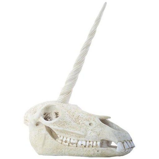 Crafted from durable resin, this Unicorn Skull measures 8.5" x 4.75" x 10.75", offering a detailed and realistic decorative piece. Its precise dime...