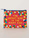 This coin purse is made from 95% post-consumer recycled materials and is measured at 4 inches wide by 3 inches high. Additionally, 1% of all sales from Blue Q bags go towards supporting environmental initiatives worldwide.