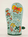 - This oven mitt is constructed with super-insulated, 100% cotton material. Additionally, a portion of the sale for all Blue Q Oven Mitts goes towards supporting hunger relief initiatives worldwide, including malnutrition programs at Doctors Without Borders