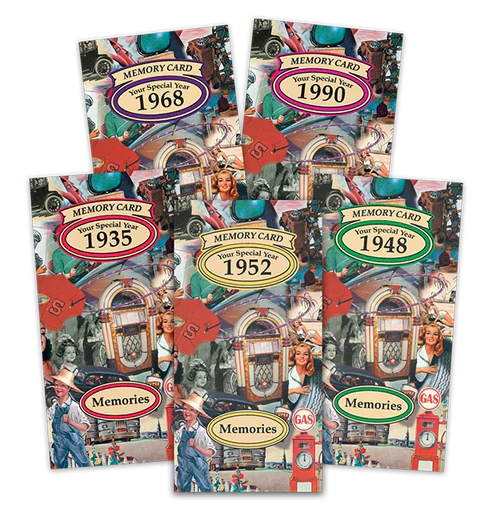 Keep the fun of special years close with Memory Cards! These pocket-sized fold-out cards pack interesting facts from 1930 to 2001 into a convenient...