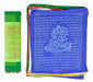 Green Tara Prayer Flag features 25 traditional Tibetan flags, each measuring 8" wide by 9.5" high. Green Tara, known as the "Mother of Liberation," symbolizes compassion, protection, and swift action against obstacles. These authentic flags are designed to spread blessings and positive energy when hung in accordance with Tibetan Buddhist tradition.