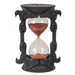 The Raven Sandtimer measures 5.25" x 4" x 7" and is crafted from hand-painted resin, showcasing meticulous artistry and attention to detail. This elegant timekeeping piece blends functional design with a distinctive raven motif, making it an exceptional addition for collectors seeking both style and precision.
