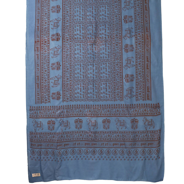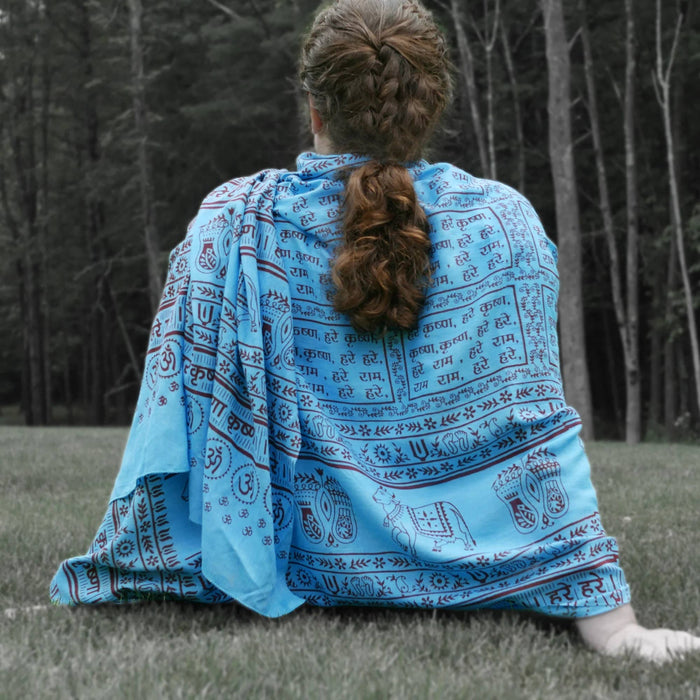 Meditation Yoga Prayer Shawl - Maha Mantra -Denim Blue Large